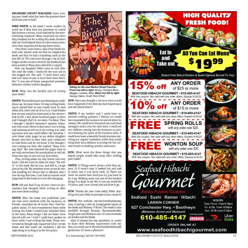 Interview appeared in the Delaware County Magazine and the Main Line Chronicles September 2022