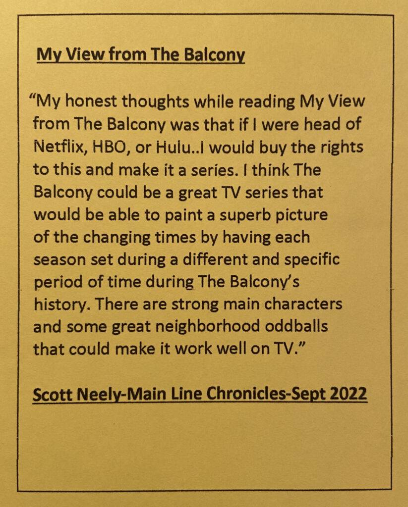 · “My view from the Balcony”….Great book Mike Smith, thanks for bringing back some cherished memories from Lansdowne and Upper Darby.